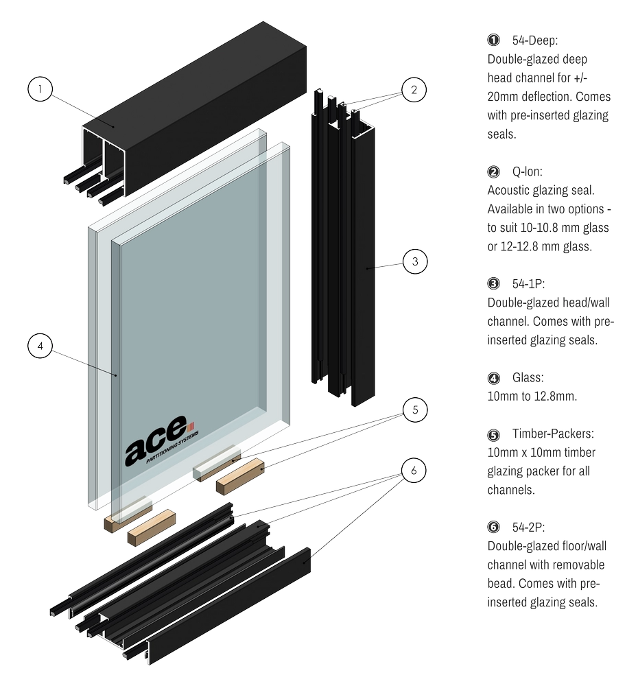 The 54-Deep is a one-part aluminium profile, designed for use as a head channel in double-glazed systems, offering a deflection range of +/- 20mm. Made from high-quality Aluminium 6063 T6, this robust double glazing aluminium frame provides strength and flexibility in glass partition installations.